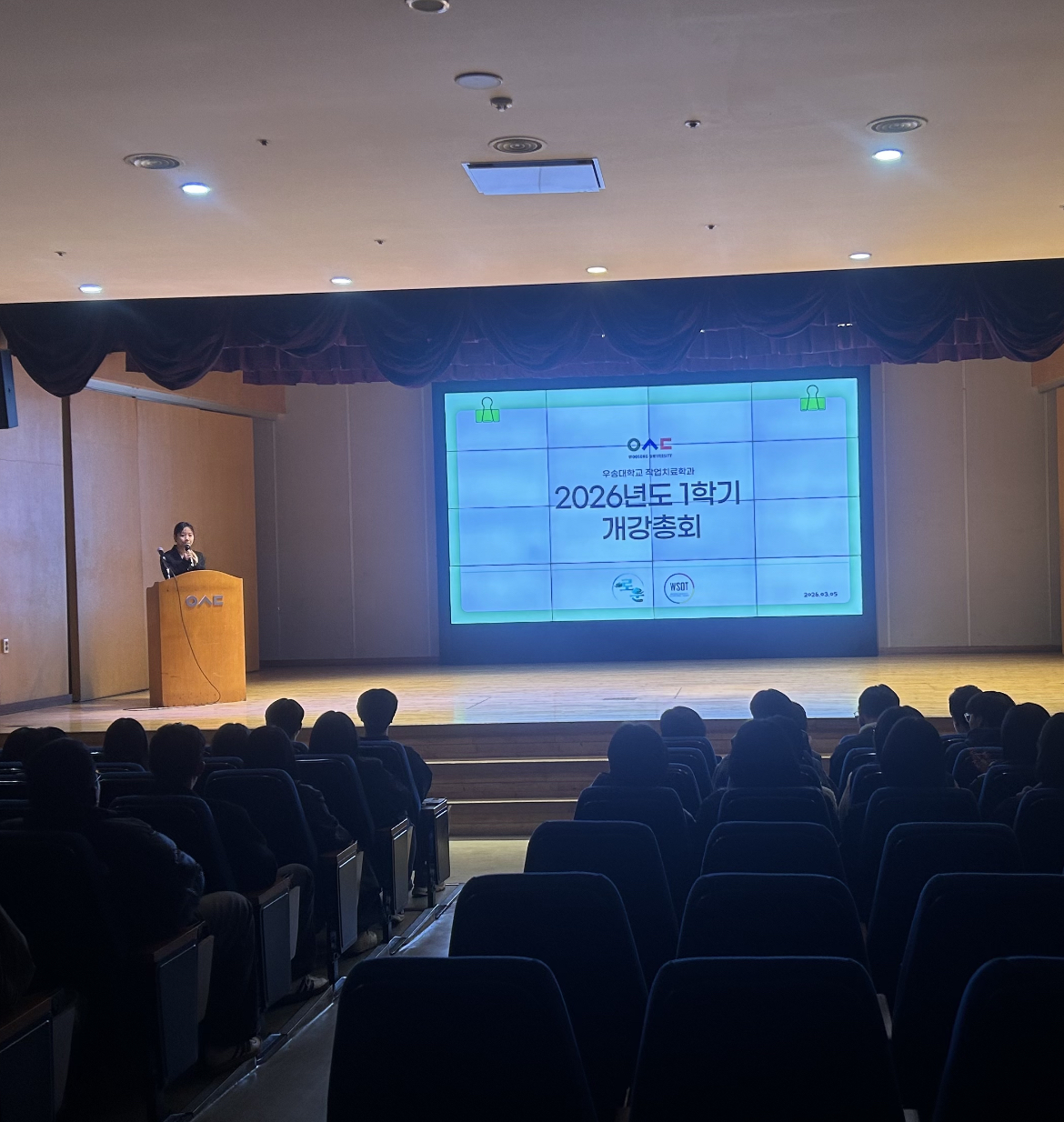 커뮤니티 공지사항 포토갤러리 동영상갤러리 대학생활엿보기 학생회 동아리 작업치료학과 특성화 포토갤러리Home커뮤니티포토갤러리 2026학년도 1학기 개강총회 작성자 : 학과관리자 | 작성일 : 2026.03.16 | 조회수 : 40 안녕하세요. 작업치료학과 26대 학생회 「로운」 입니다.🩵 지난 3월 5일 1학기 개강총회를 진행했습니다. 개강총회는 학과장님의 인사말을 시작으로 교수님 및 조교님 소개가 진행되었습니다. 이어서 학생회 소개와 학년별 임원 소개, 학사 일정 안내와 학생회비 지출 예산안 안내가 이루어졌습니다. 폐회식과 단체사진 촬영을 끝으로 개강총회를 마무리하며 새로운 한 해의 시작을 함께하는 뜻깊은 시간을 가졌습니다. 앞으로 1년 동안 학생회 「로운」이 준비한 다양한 행사들이 진행될 예정이니 많은 관심과 참여 부탁드립니다👏 첨부파일 KakaoTalk_20260316_143723236.png KakaoTalk_20260316_143723236_01.jpg KakaoTalk_20260316_143723236_02.jpg KakaoTalk_20260316_143723236_03.jpg KakaoTalk_20260316_143723236_04.jpg KakaoTalk_20260316_143723236_05.jpg KakaoTalk_20260316_143723236_06.jpg KakaoTalk_20260316_143723236_07.jpg KakaoTalk_20260316_143723236_08.jpg KakaoTalk_20260316_143723236_09.jpg KakaoTalk_20260316_143723236_10.jpg KakaoTalk_20260316_143723236_11.jpg KakaoTalk_20260316_143723236_13.jpg KakaoTalk_20260316_143723236_12.jpg 목록